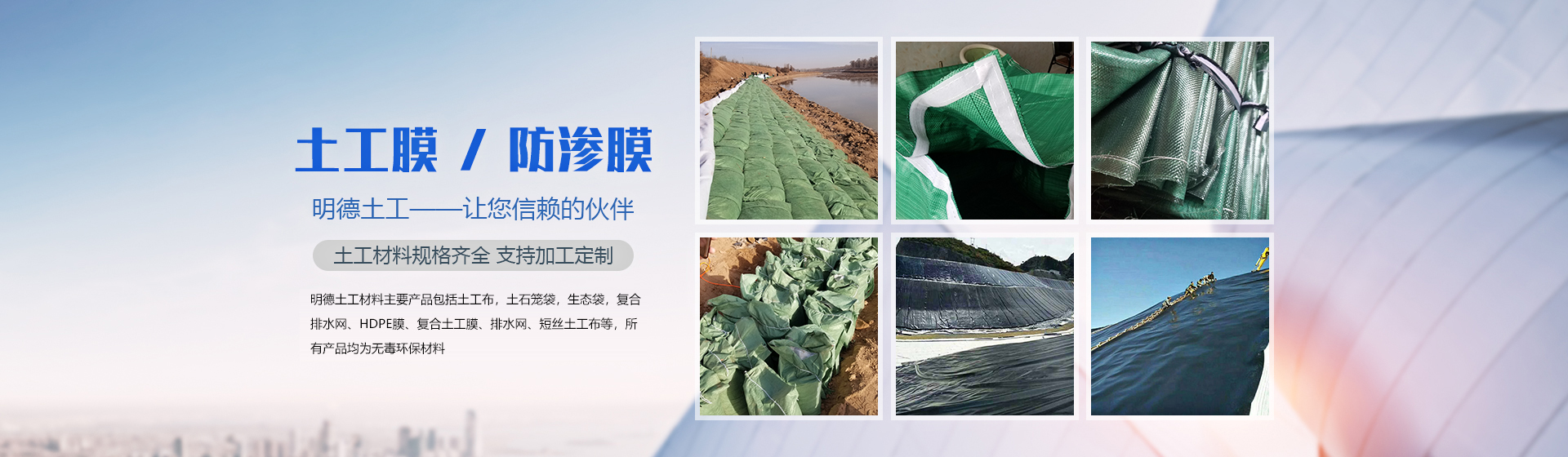 • 明德土工材料主要產品包括土工布,HDPE膜、復合土工膜、排水網、短絲土工布等,所有產品均為無毒環保材料,可廣泛應用于環境修復工程